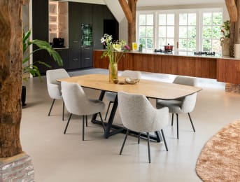 Cette chaise pivotante avec accoudoirs Talia possède un beau dossier large et 4 pieds de couleur graphite. Talia existe également avec des pieds en chêne clair. De plus, cette chaise se décline aussi comme chaise de salle à manger sans accoudoirs. Sa hauteur d'assise est de 50 cm. Enfin, cette chaise est recouverte du tissu bouclé tendance Brioni disponible en deux couleurs. Voici la version de couleur crème.